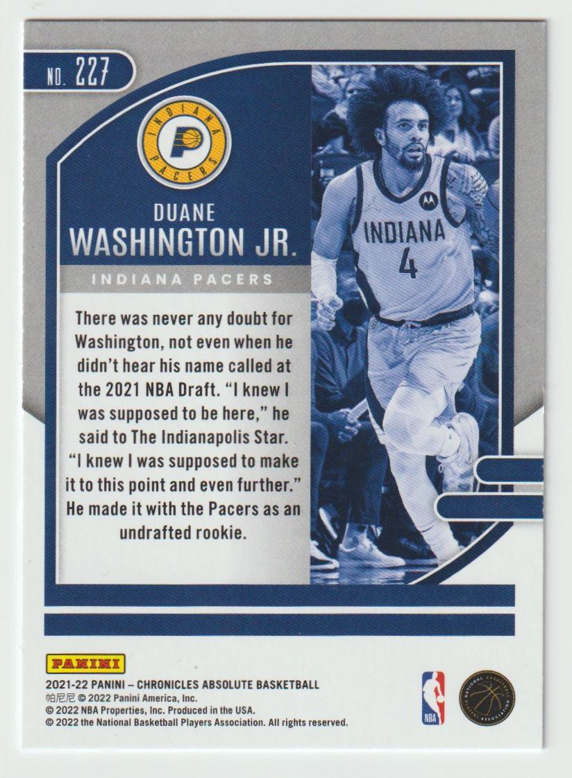 227 Duane Washington Jr. - Indiana Pacers 2021/22 Chronicles Basketball