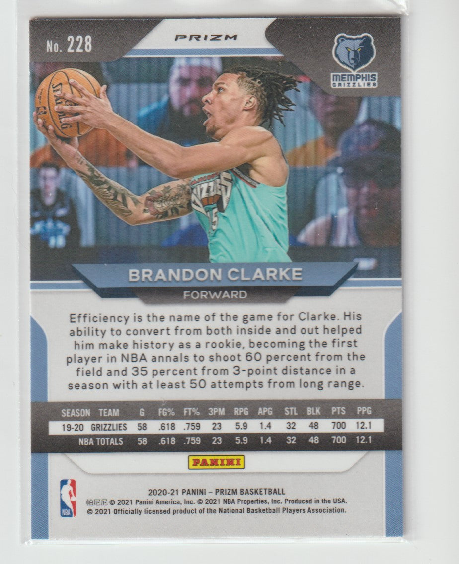 228 Brandon Clarke - Memphis Grizzlies Red Ice Prizm 2020/21 Prizm Basketball