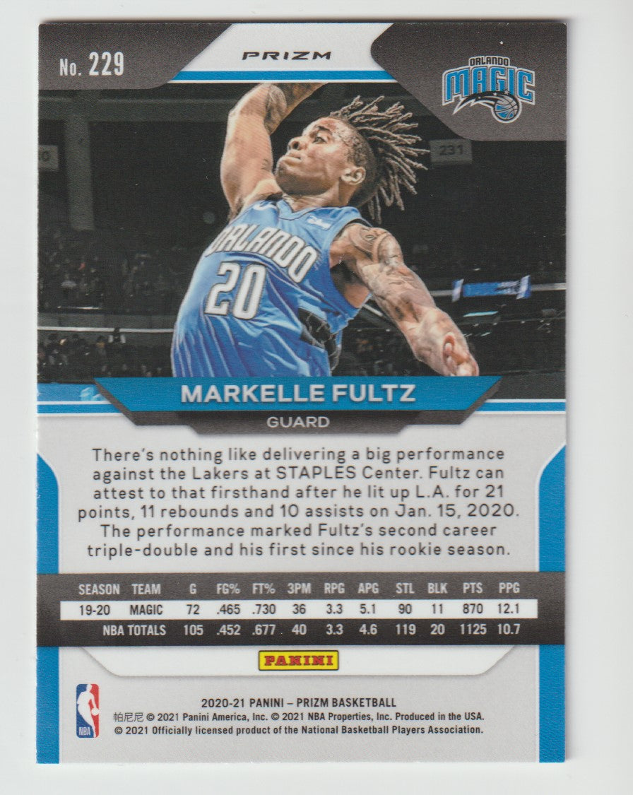 229 Markelle Fultz - Orlando Magic Red White Blue Prizm 2020/21 Prizm Basketball