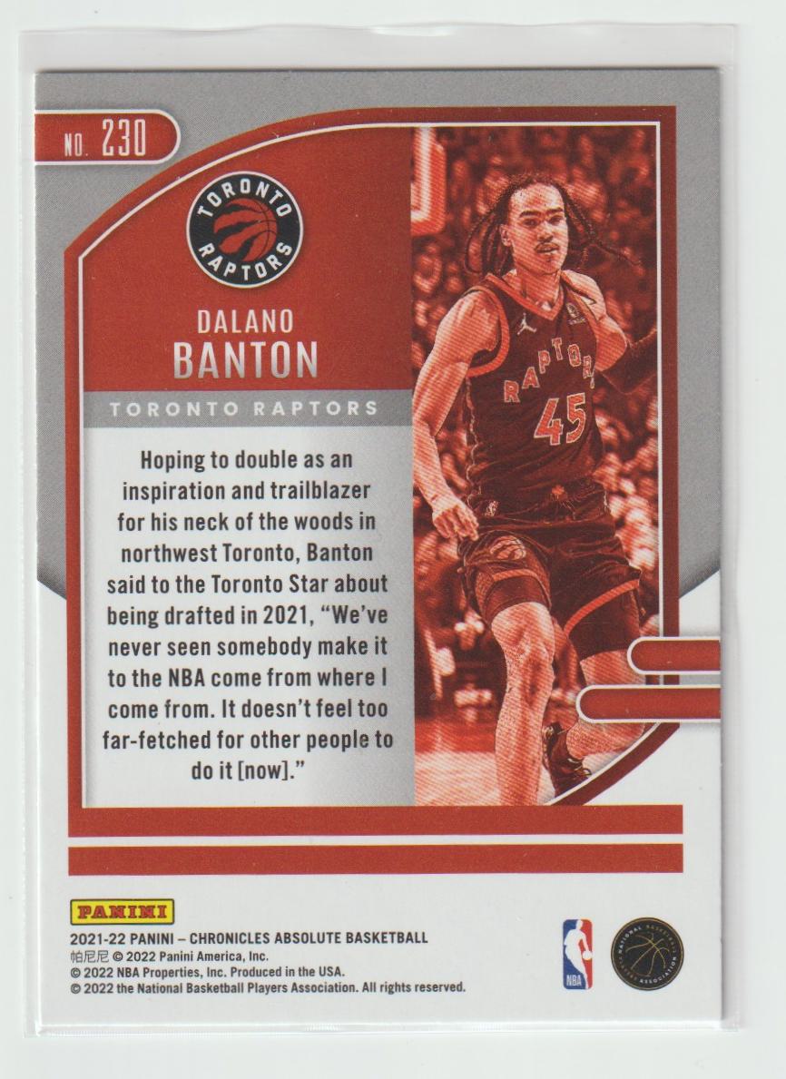 230 Dalano Banton - Toronto Raptors Green 2021/22 Chronicles Basketball