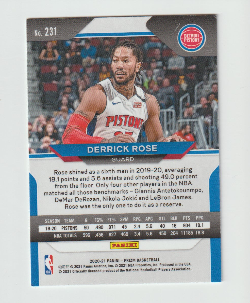 231 Derrick Rose - Detroit Pistons 2020/21 Prizm Basketball