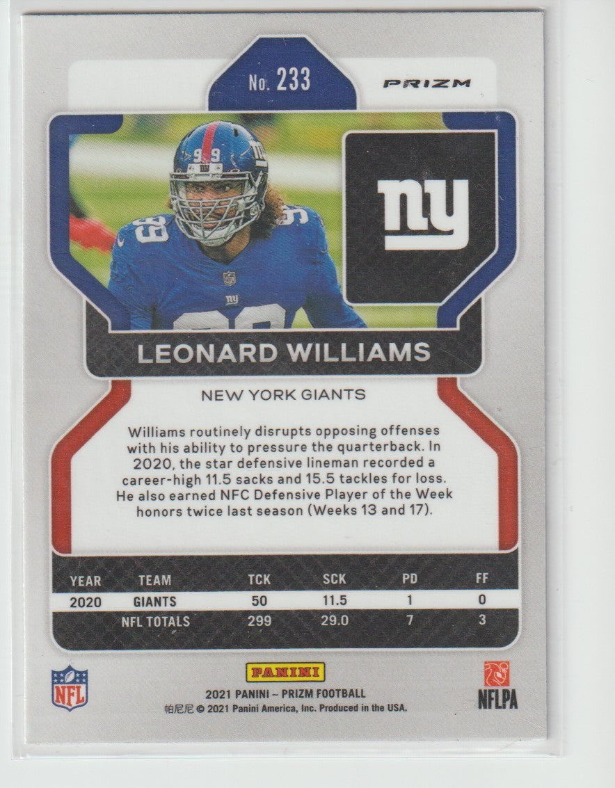 233 Leonard Williams - New York Giants Red White Blue 2021 Prizm Football