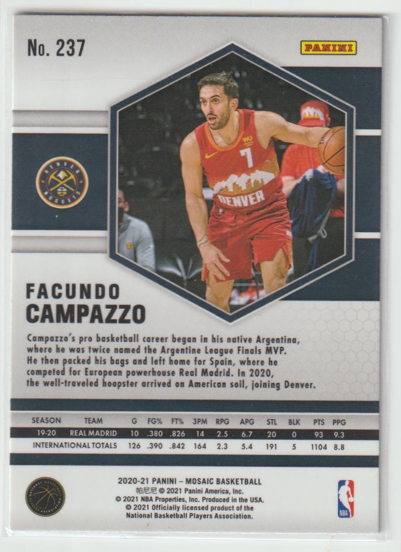 237 Facundo Campazzo - Denver Nuggets Mosaic 2020/21 Mosaic Basketball