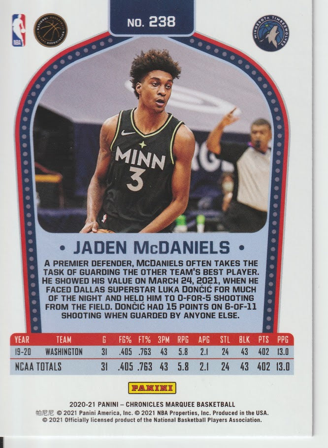 238 Jaden McDaniels - Minnesota Timberwolves 20/21 Chronicles Basketball