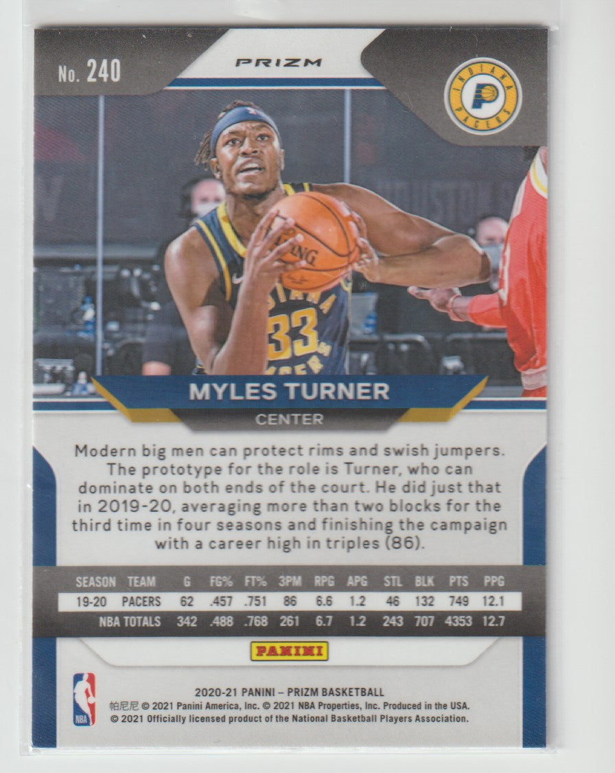 240 Myles Turner - Indiana Pacers Red White Blue Prizm 2020/21 Prizm Basketball