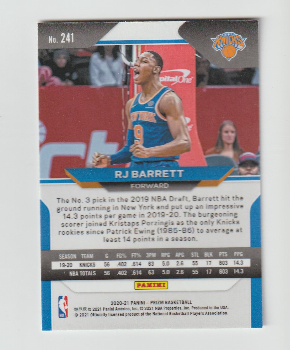 241 RJ Barrett - New York Knicks 2020/21 Prizm Basketball