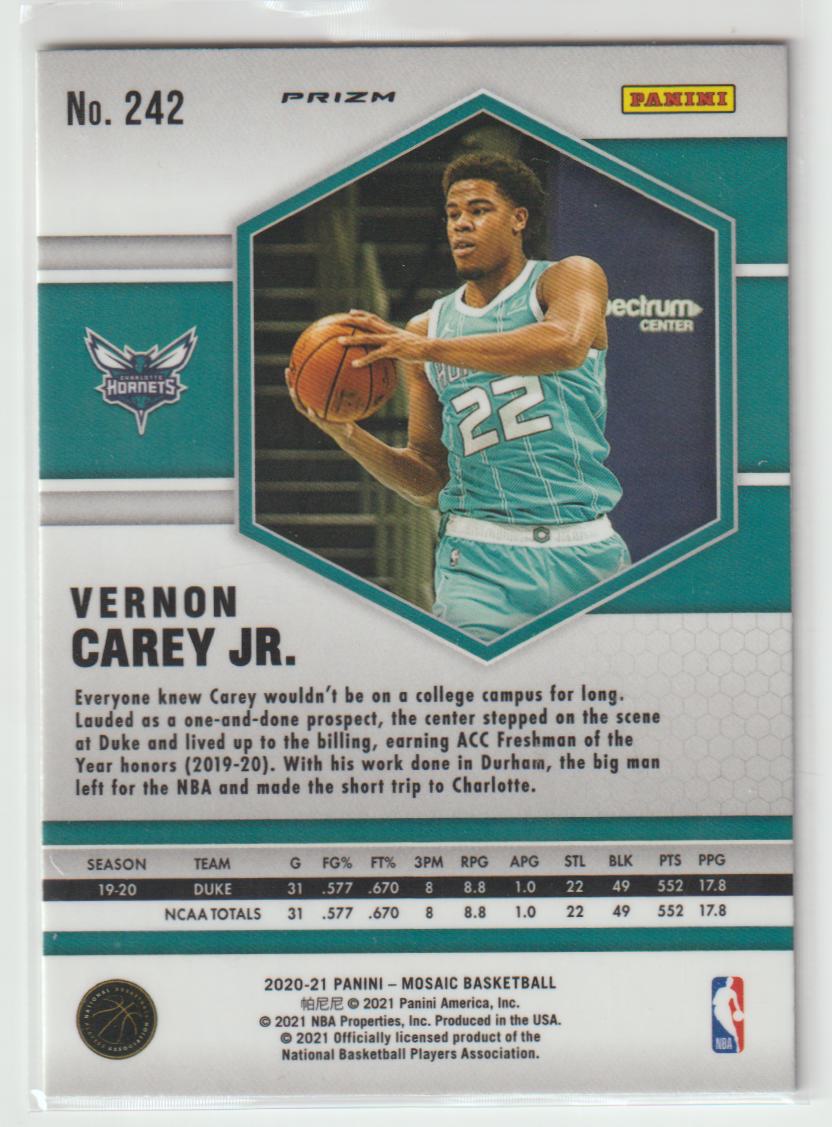 242 Vernon Carey Jr. - Charlotte Hornets Camo Pink 2020/21 Mosaic Basketball