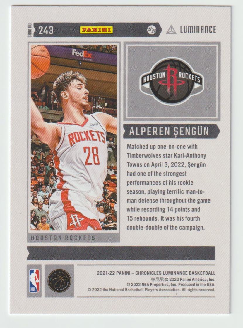 243 Alperen Sengun - Houston Rockets 2021/22 Chronicles Basketball