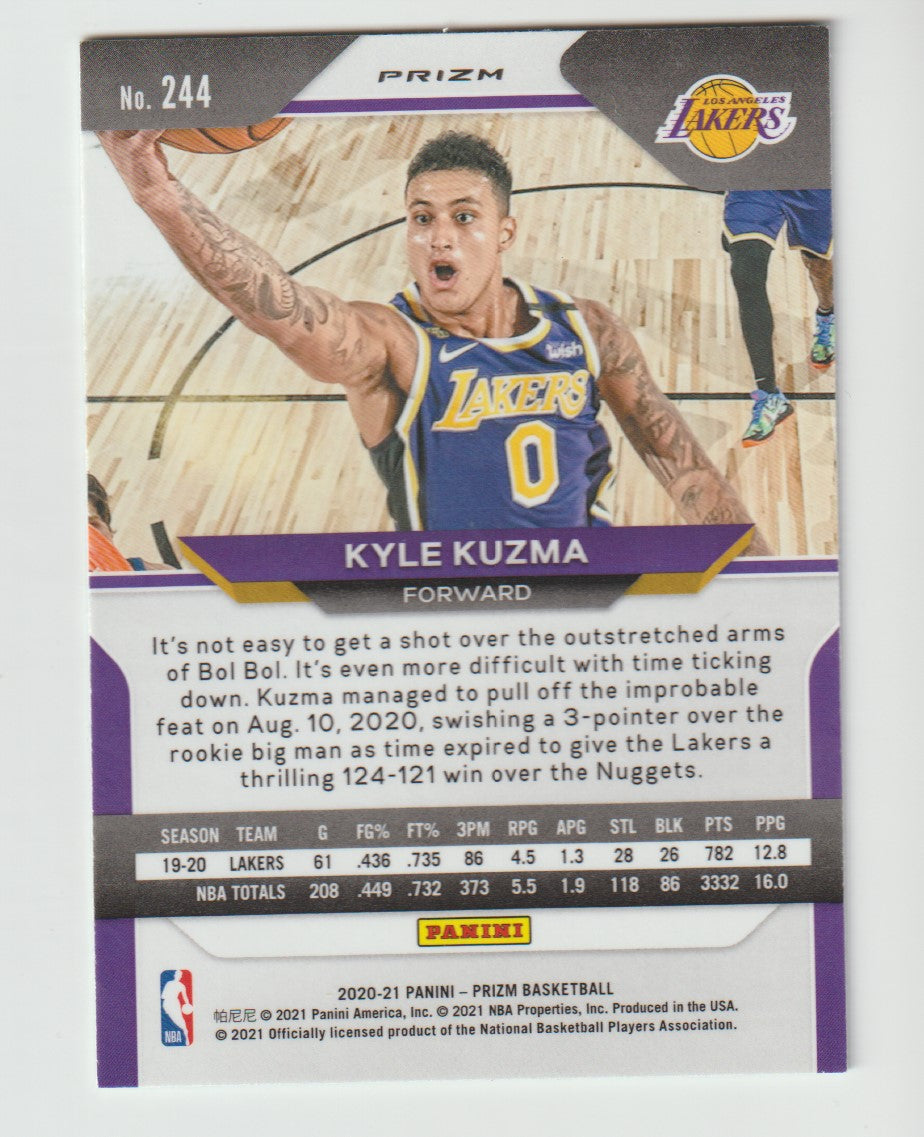 244 Kyle Kuzma - Los Angeles Lakers Green Prizm 2020/21 Prizm Basketball