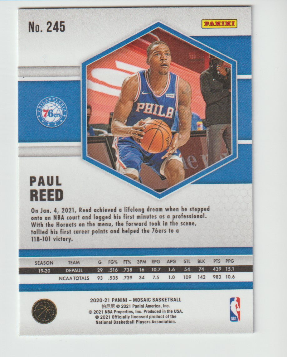 245 Paul Reed - Philadelphia 76ers 2020/21 Mosaic Basketball