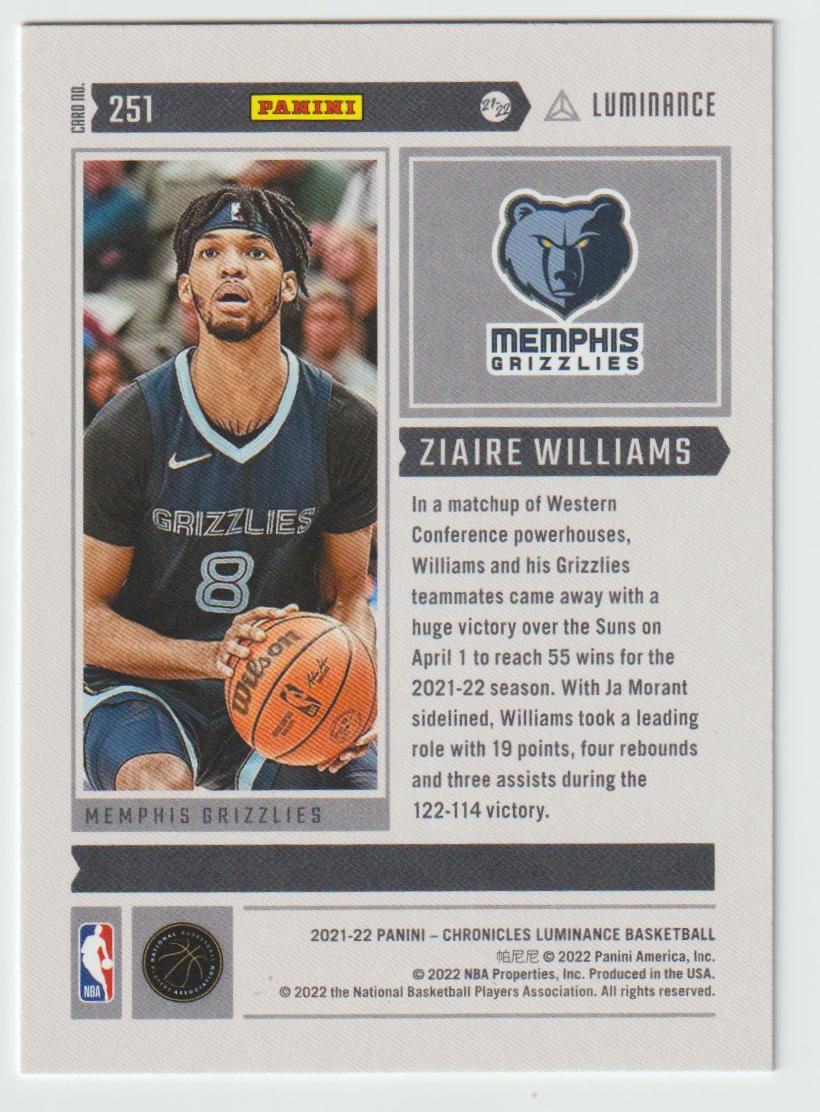 251 Ziaire Williams - Memphis Grizzlies 2021/22 Chronicles Basketball