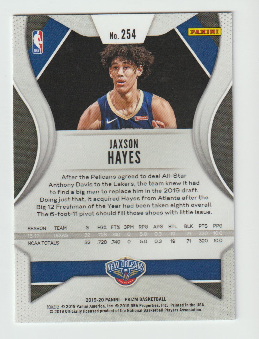 254 Jaxson Hayes - New Orleans Pelicans 2019/20 Prizm Basketball