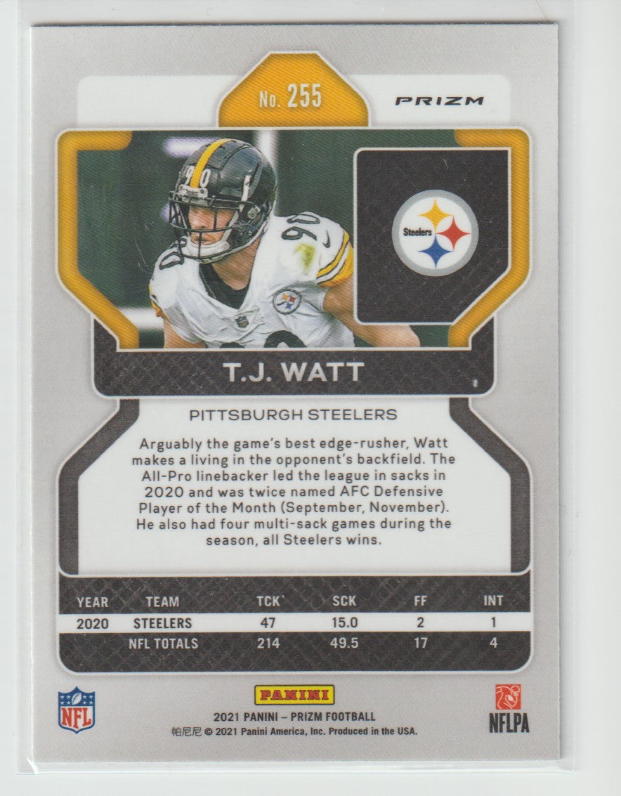 255 T.J. Watt - Pittsburgh Steelers Green 2021 Prizm Football