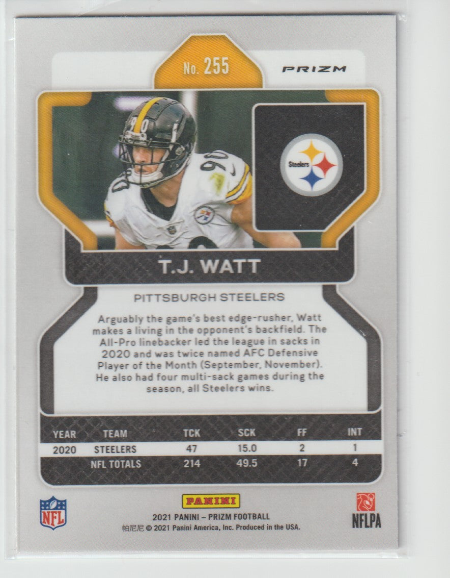 255 T.J. Watt - Pittsburgh Steelers Red White Blue 2021 Prizm Football