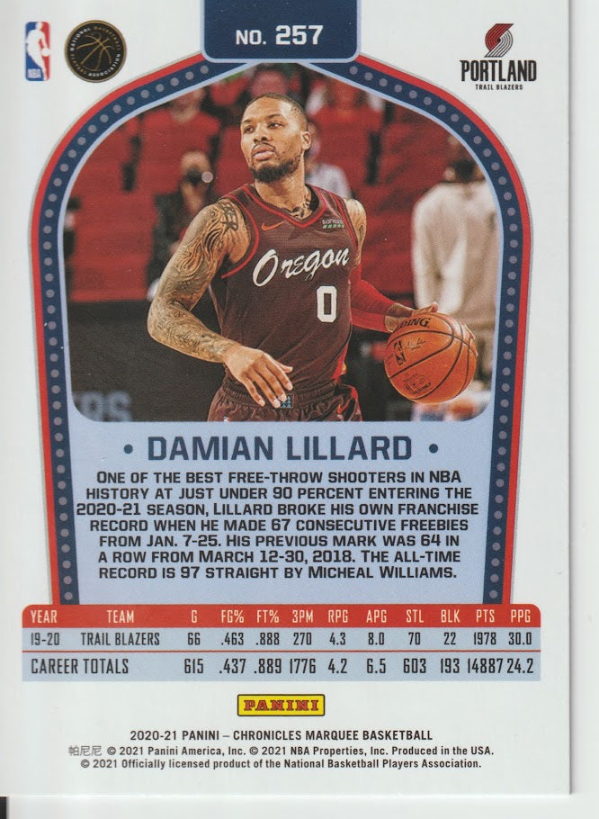 257 Damian Lillard - Portland Trail Blazers 20/21 Chronicles Basketball