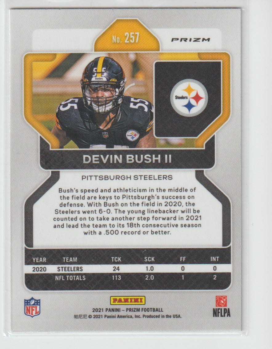 257 Devin Bush II - Pittsburgh Steelers Red White Blue 2021 Prizm Football