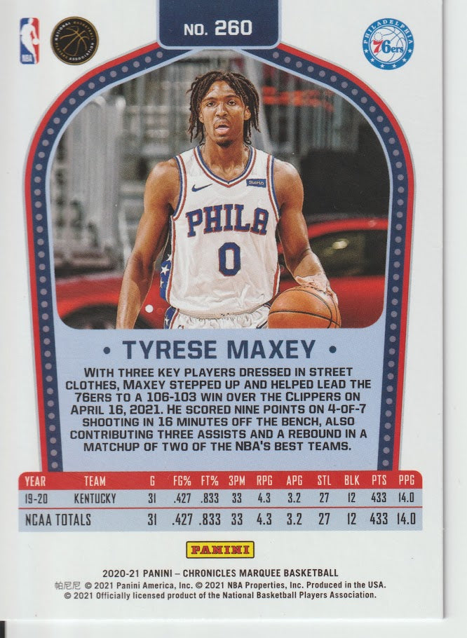 260 Tyrese Maxey - Philadelphia 76ers 20/21 Chronicles Basketball