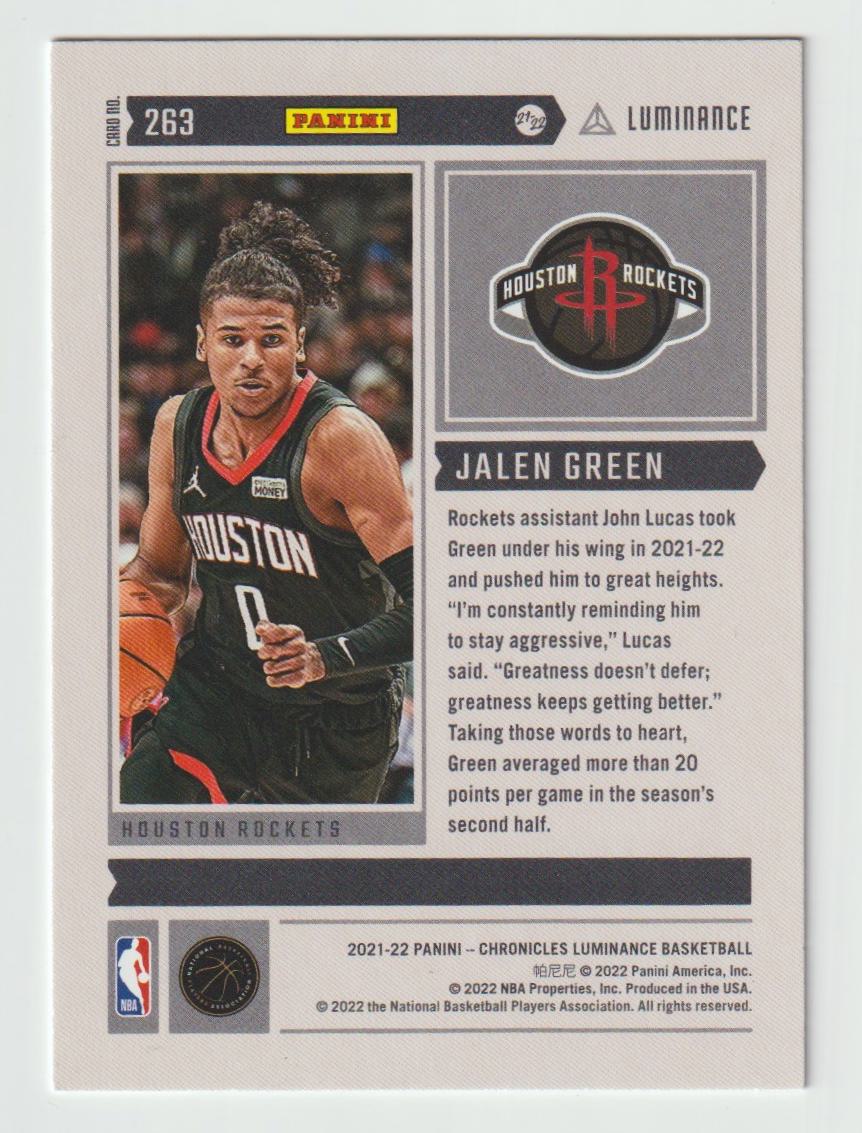 263 Jalen Green - Houston Rockets 2021/22 Chronicles Basketball