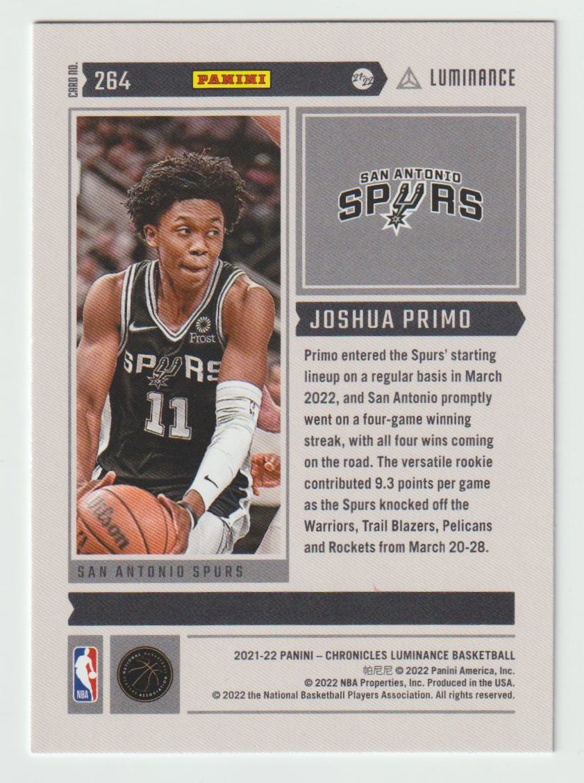 264 Joshua Primo - San Antonio Spurs 2021/22 Chronicles Basketball