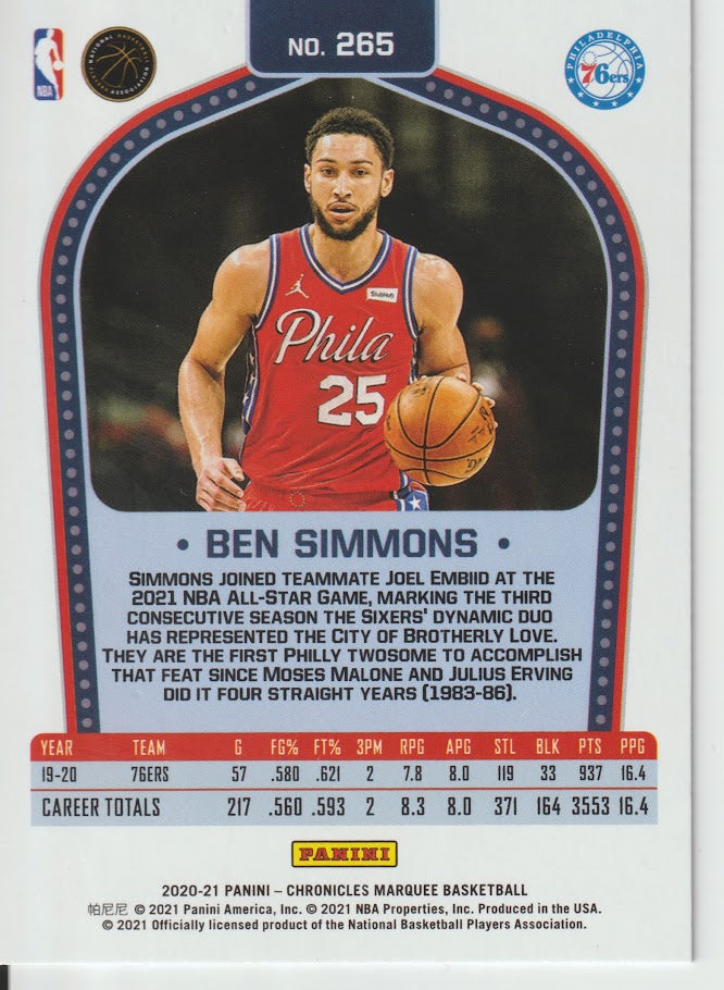 265 Ben Simmons - Philadelphia 76ers 20/21 Chronicles Basketball