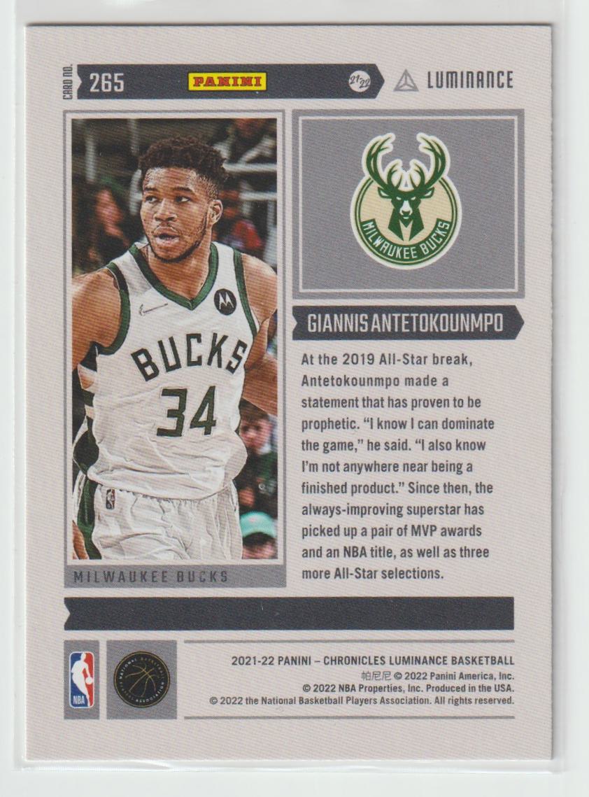 265 Giannis Antetokounmpo - Milwaukee Bucks 2021/22 Chronicles Basketball