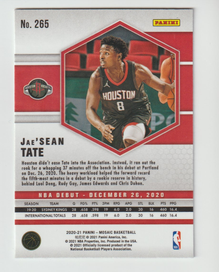 265 Jae'Sean Tate - Houston Rockets 2020/21 Mosaic Basketball