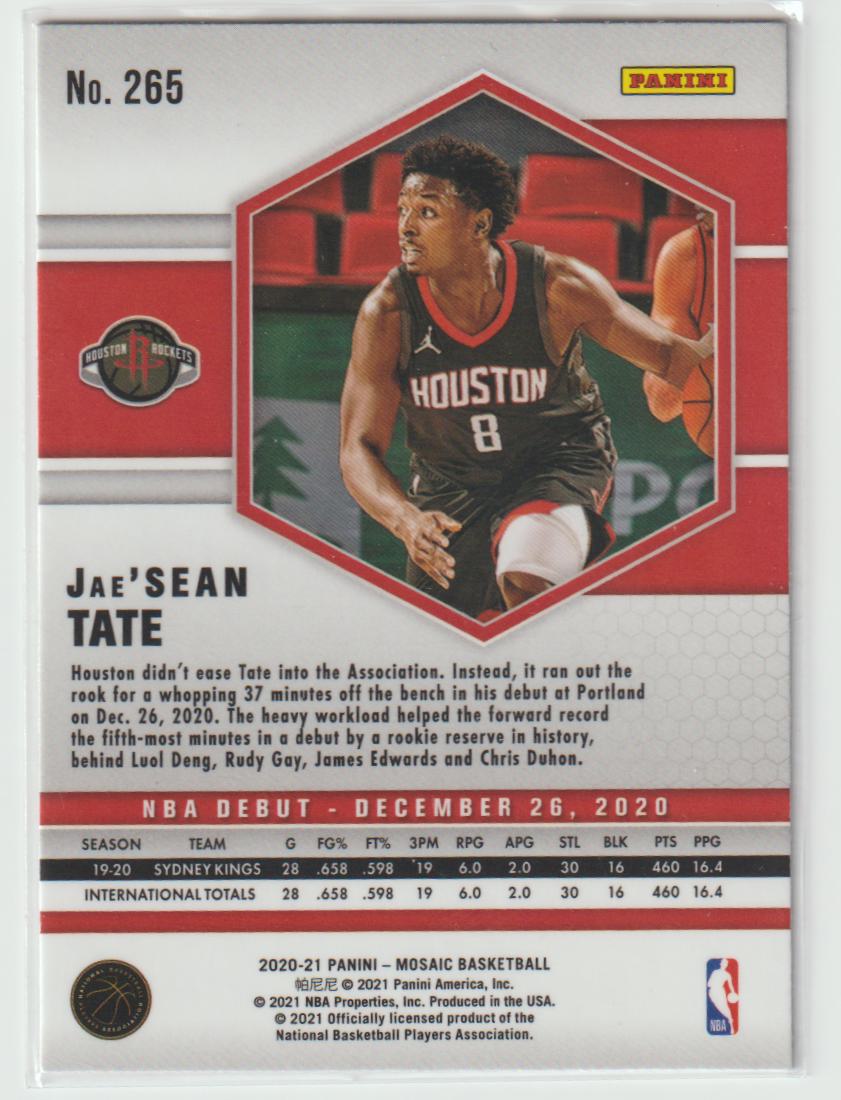 265 Jae'Sean Tate - Houston Rockets Silver 2020/21 Mosaic Basketball