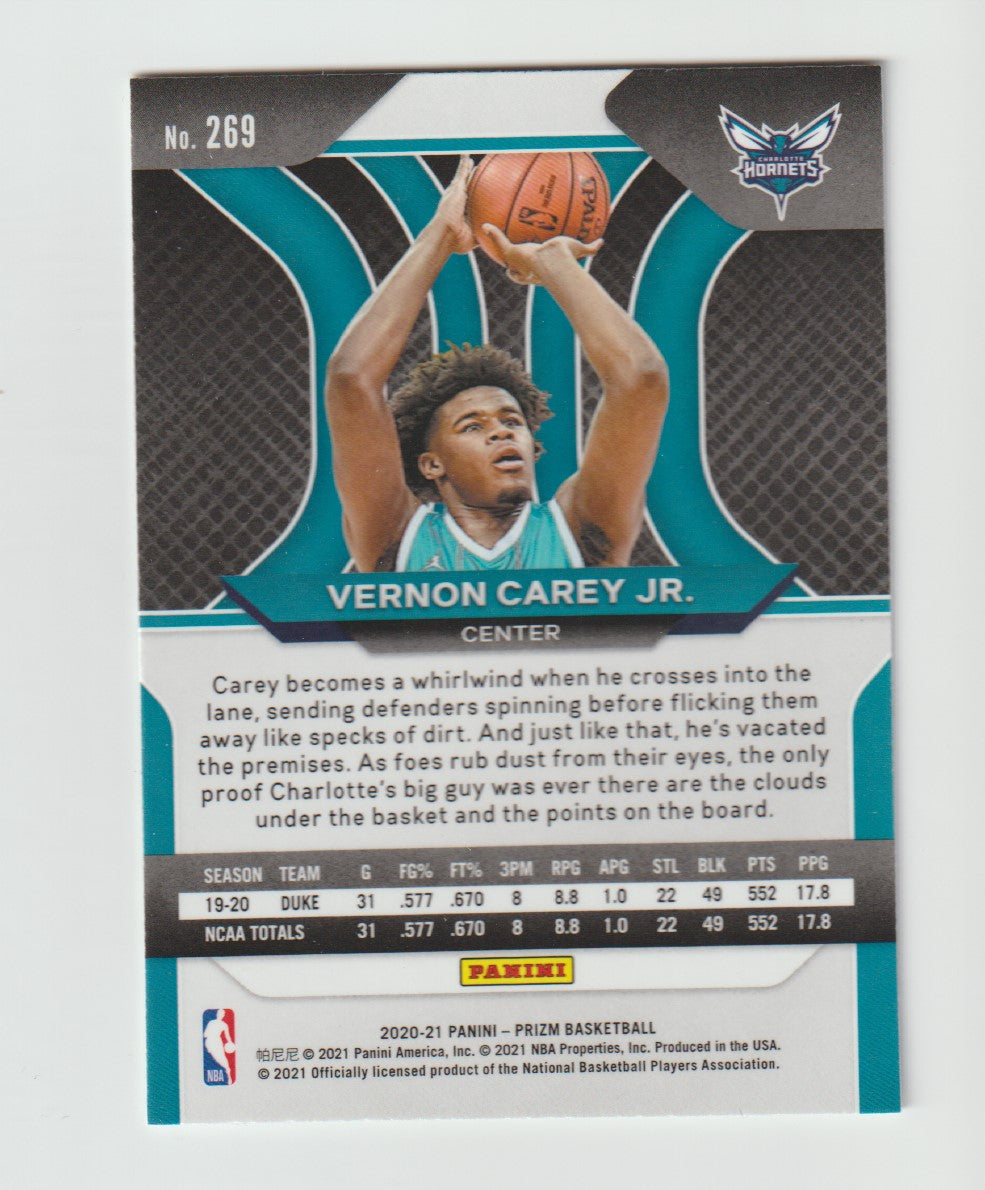 269 Vernon Carey Jr. - Charlotte Hornets 2020/21 Prizm Basketball
