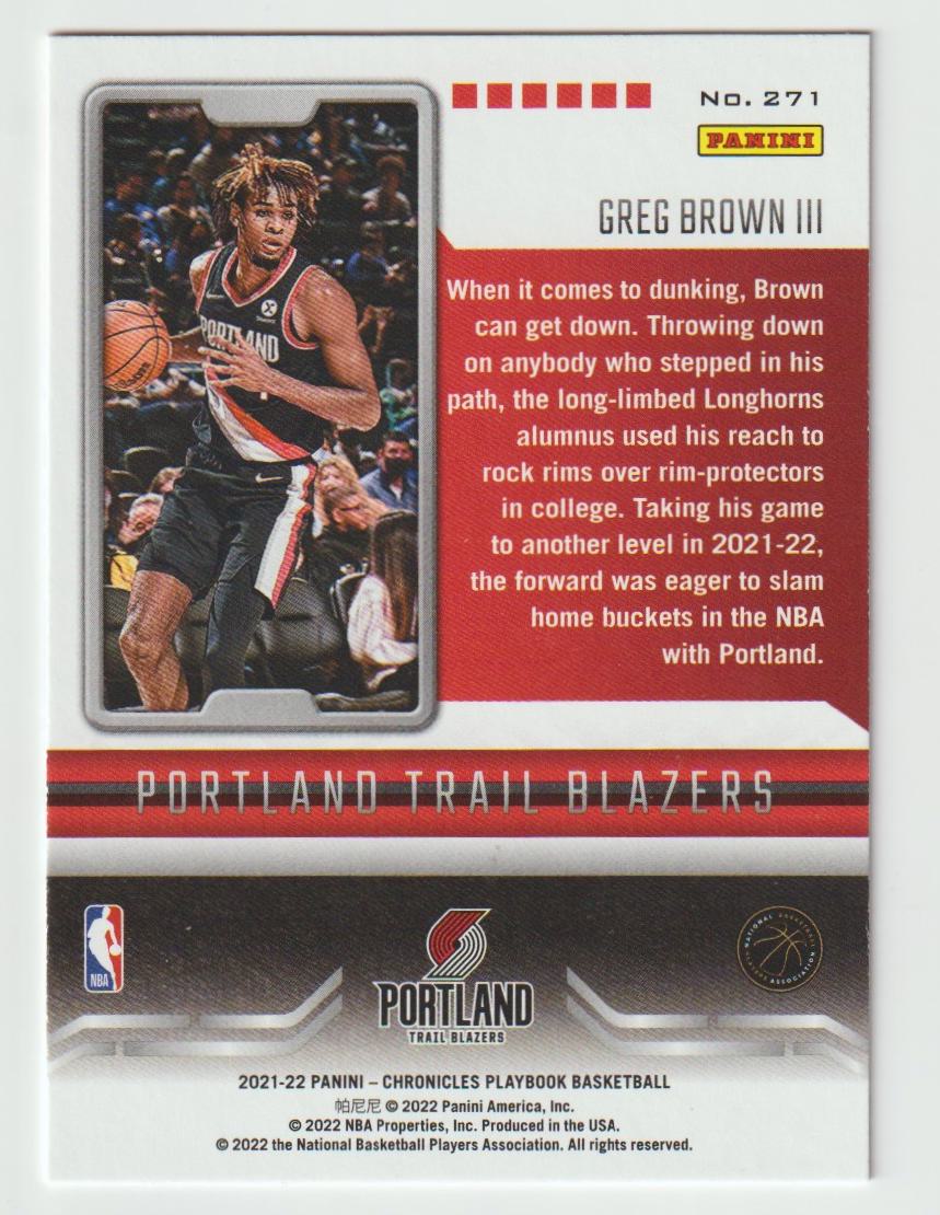 271 Greg Brown III - Portland Trail Blazers 2021/22 Chronicles Basketball