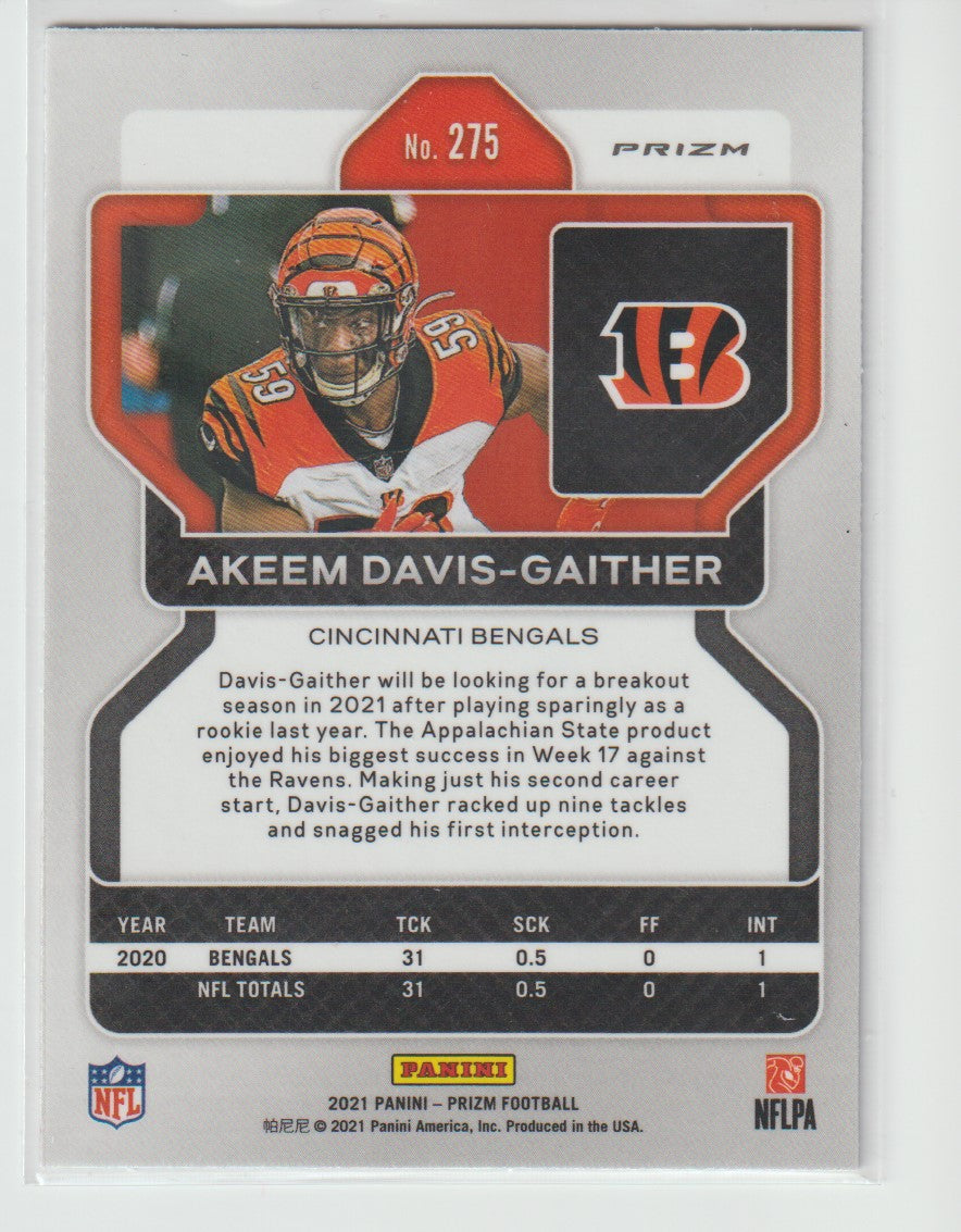 275 Akeem Davis-Gaither - Cincinnati Bengals Red White Blue 2021 Prizm Football