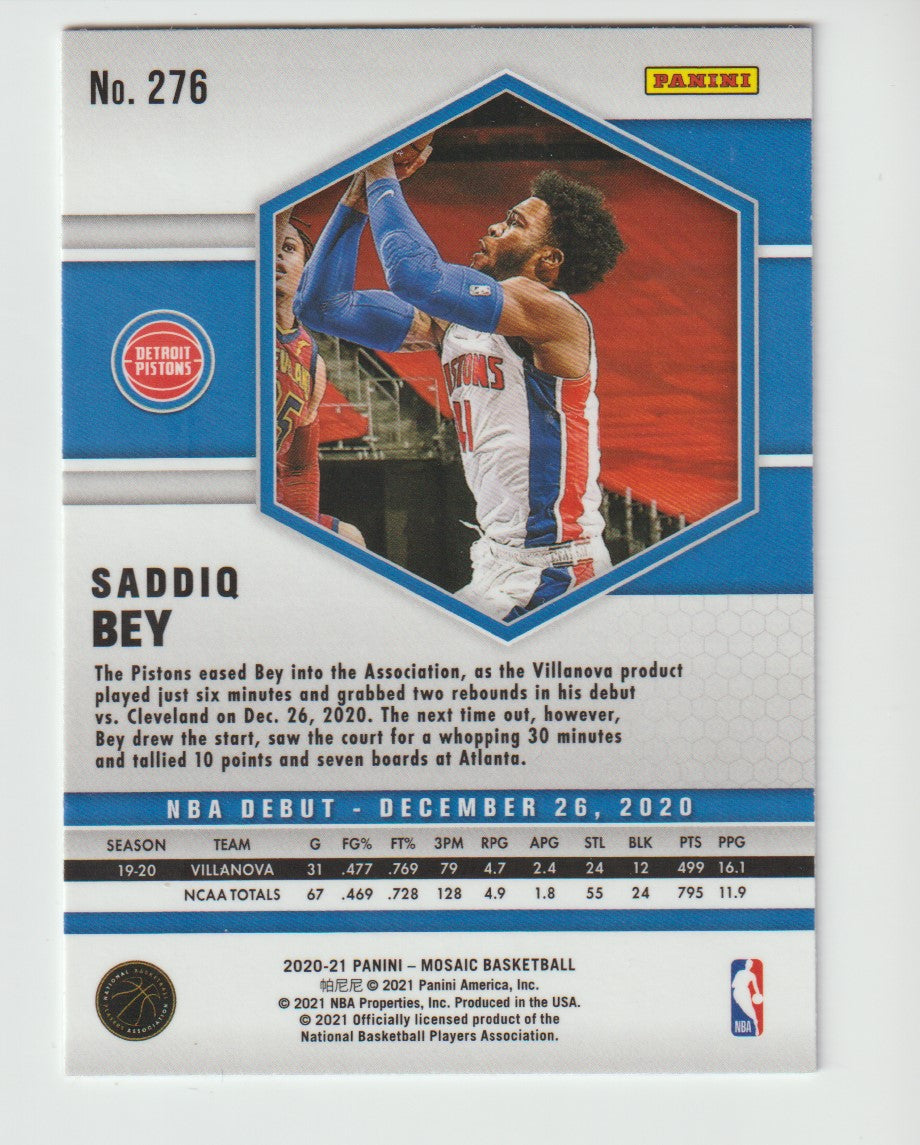 276 Saddiq Bey - Detroit Pistons 2020/21 Mosaic Basketball
