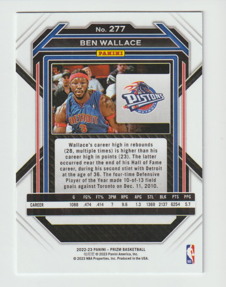 277 Ben Wallace - Detroit Pistons 2022/23 Prizm Basketball