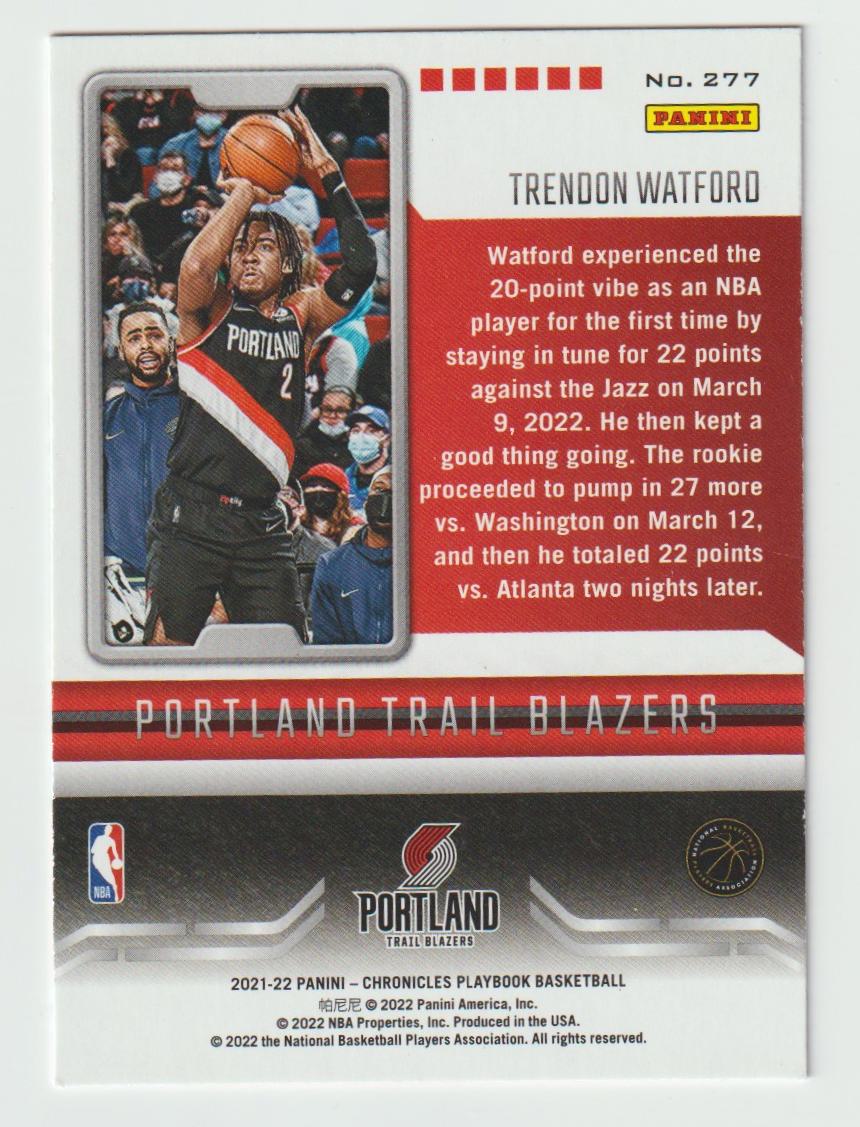 277 Trendon Watford - Portland Trail Blazers Green 2021/22 Chronicles Basketball