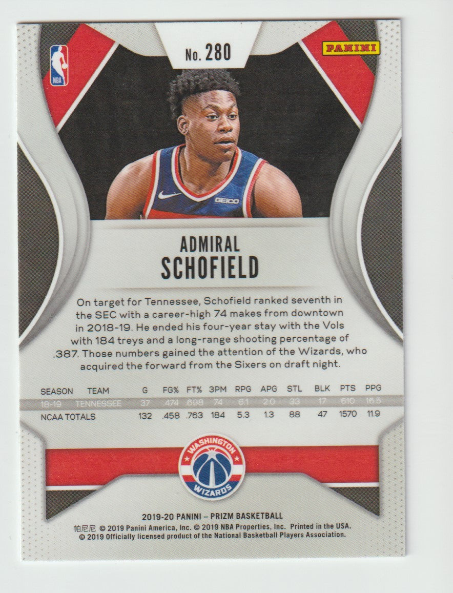 280 Admiral Schofield - Washington Wizards 2019/20 Prizm Basketball