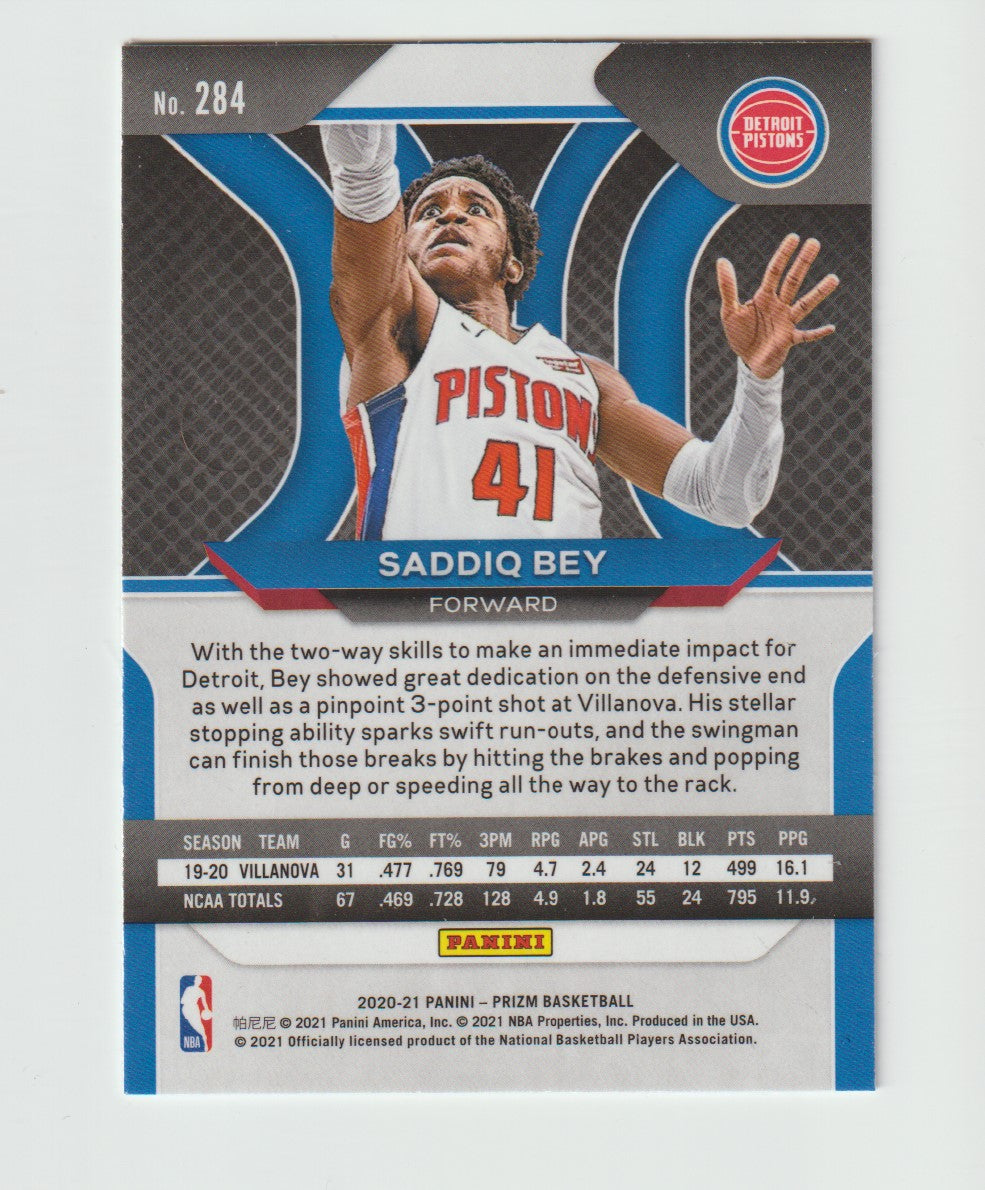 284 Saddiq Bey - Detroit Pistons 2020/21 Prizm Basketball