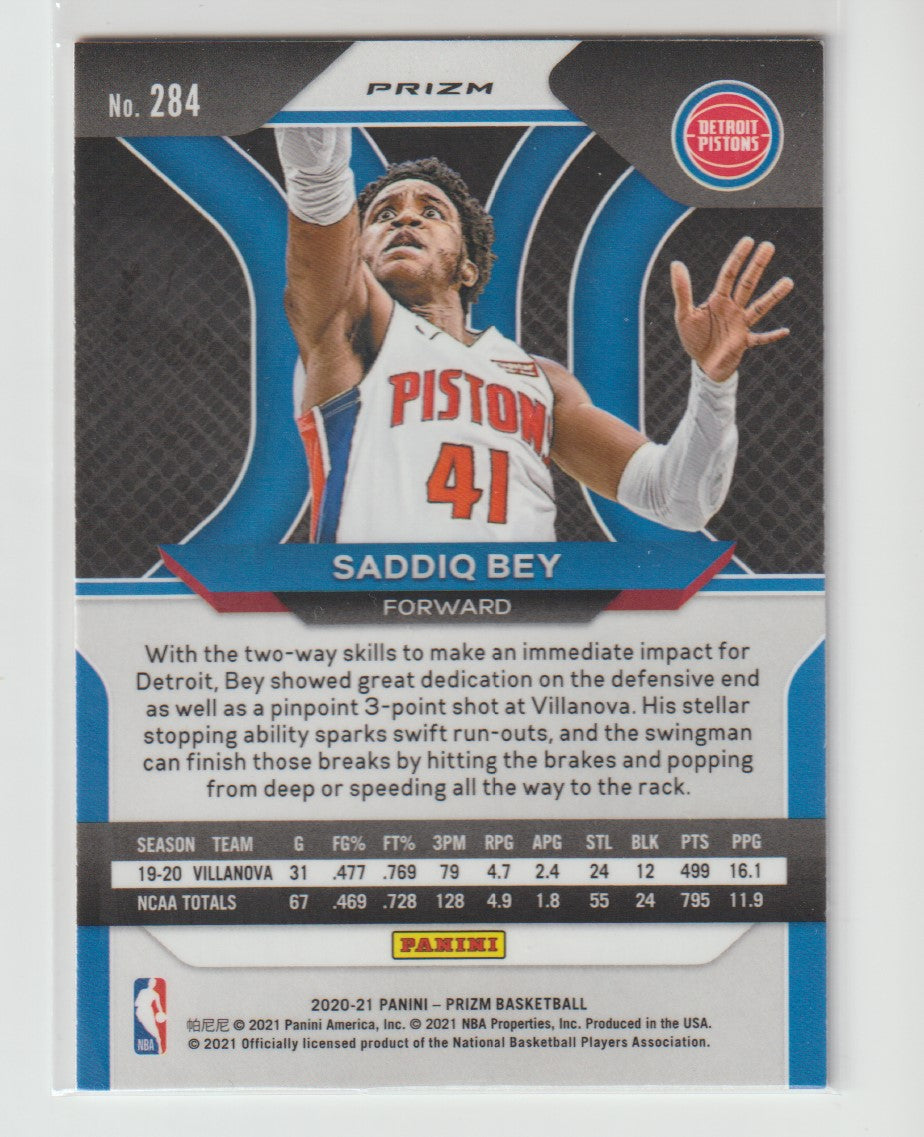 284 Saddiq Bey - Detroit Pistons Red Ice Prizm 2020/21 Prizm Basketball