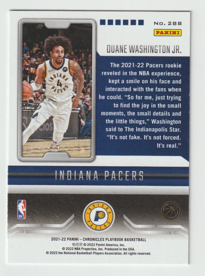 288 Duane Washington Jr. - Indiana Pacers 2021/22 Chronicles Basketball