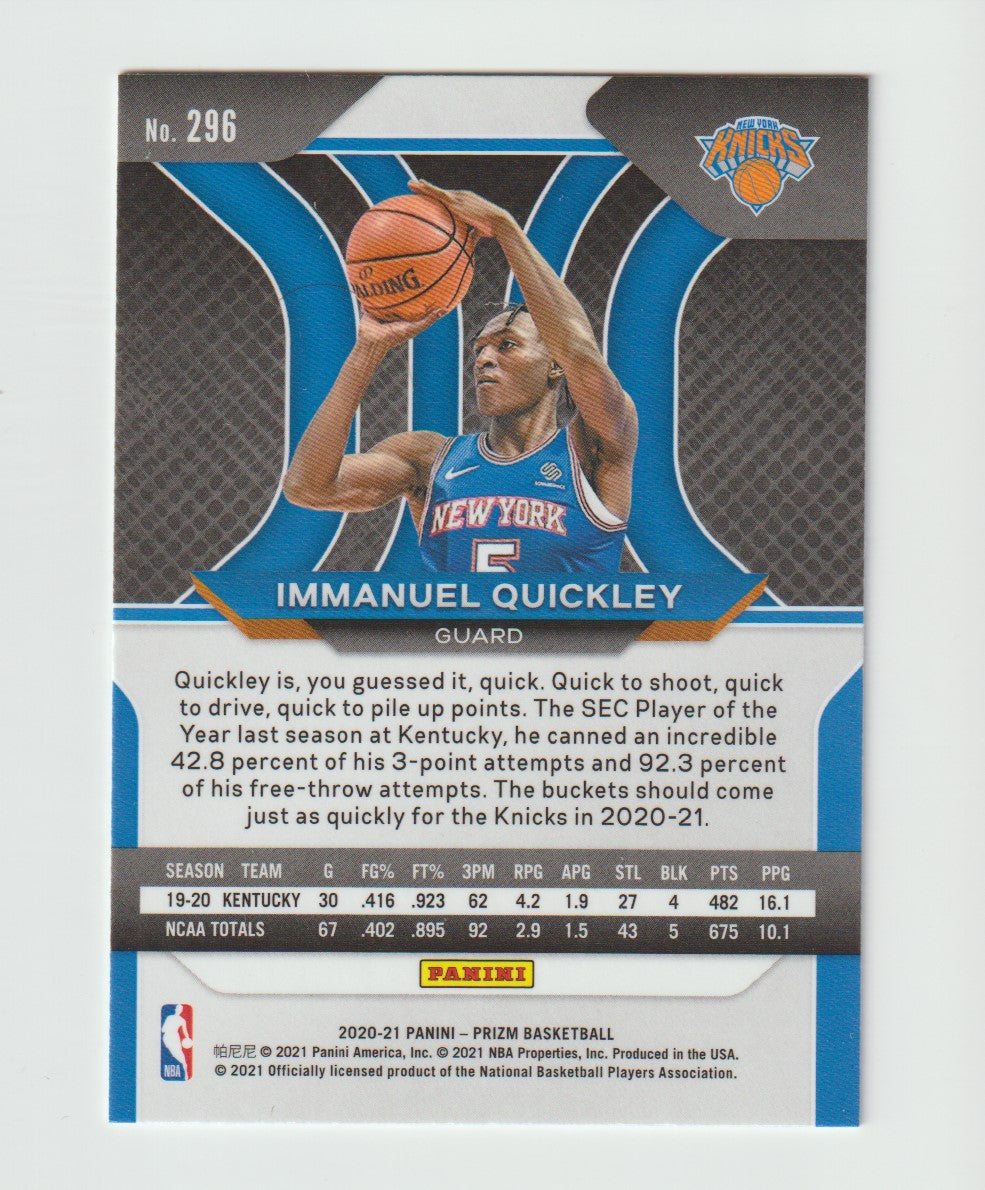 296 Immanuel Quickley - New York Knicks 2020/21 Prizm Basketball