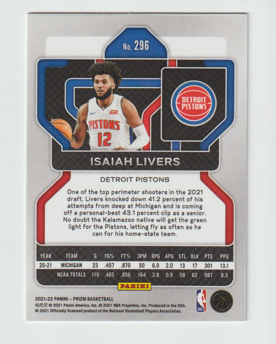 296 Isaiah Livers - Detroit Pistons 2021/22 Prizm Basketball