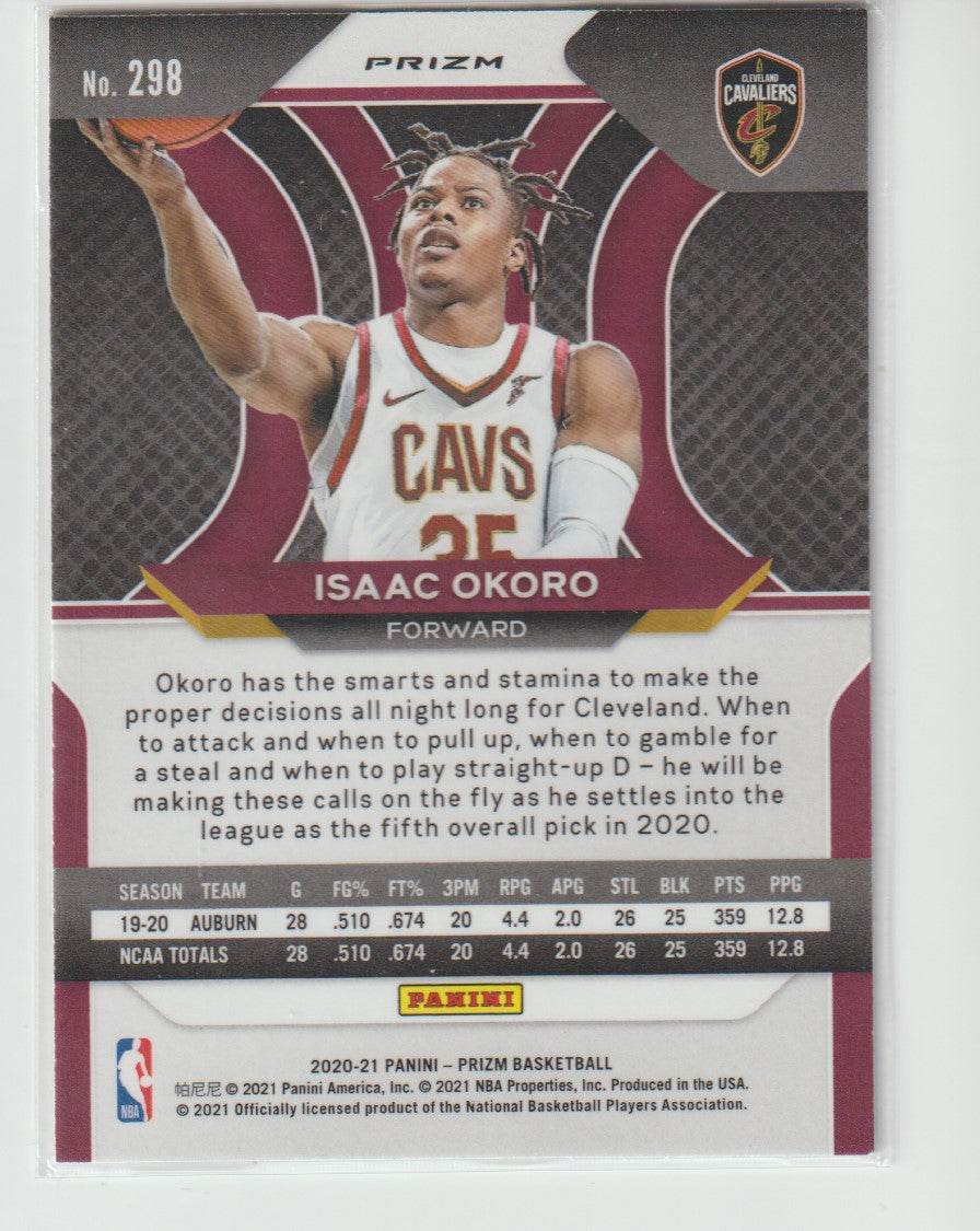 298 Isaac Okoro - Cleveland Cavaliers Silver Prizm 2020/21 Prizm Basketball