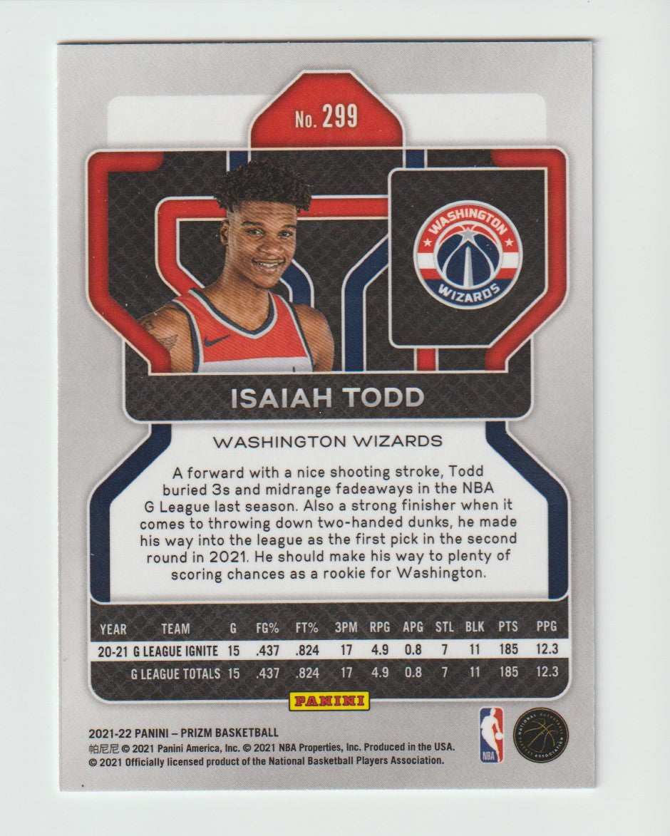 299 Isaiah Todd - Washington Wizards 2021/22 Prizm Basketball