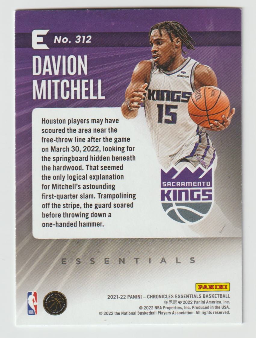 312 Davion Mitchell - Sacramento Kings 2021/22 Chronicles Basketball