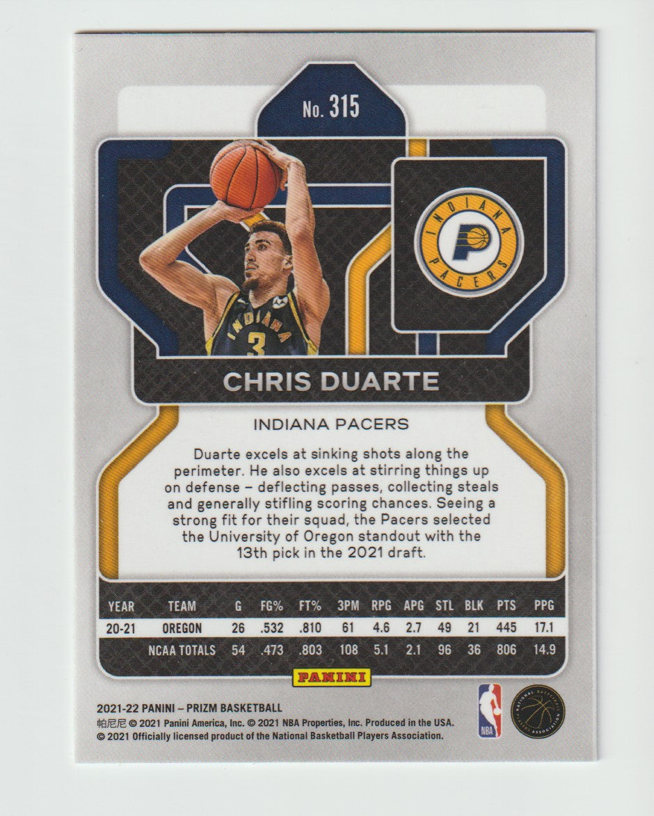 315 Chris Duarte - Indiana Pacers 2021/22 Prizm Basketball