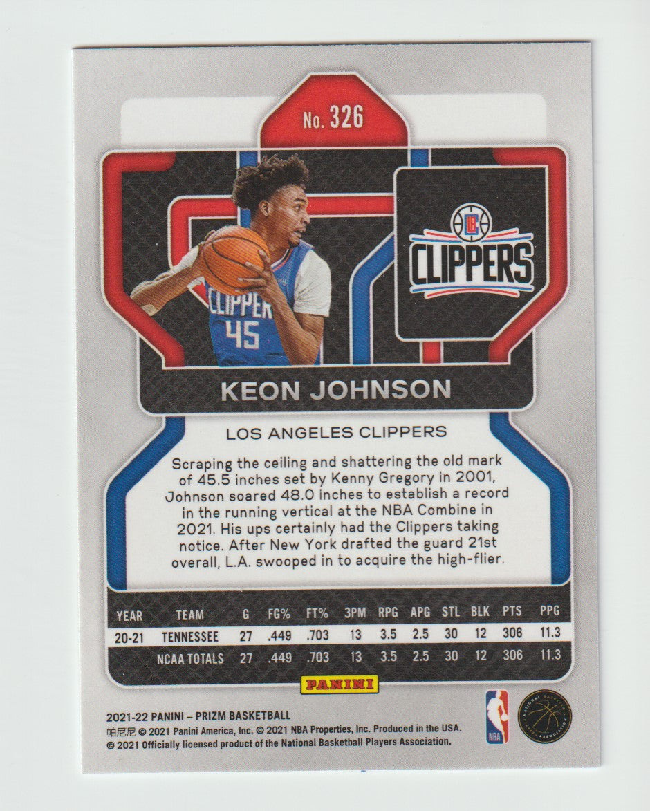 326 Keon Johnson - Los Angeles Clippers 2021/22 Prizm Basketball