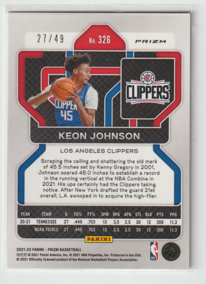 326 Keon Johnson - Los Angeles Clippers Orange 27/49