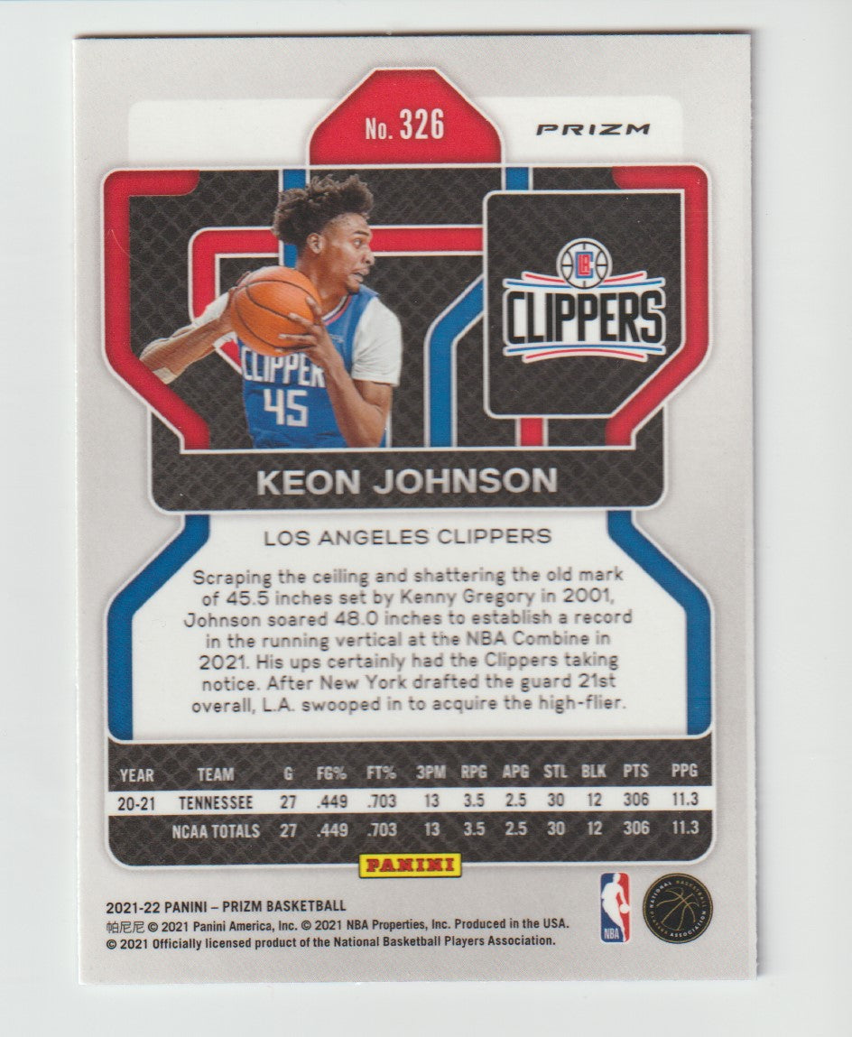 326 Keon Johnson - Los Angeles Clippers Red White Blue Prizm 2021/22 Prizm Basketball, Ebay