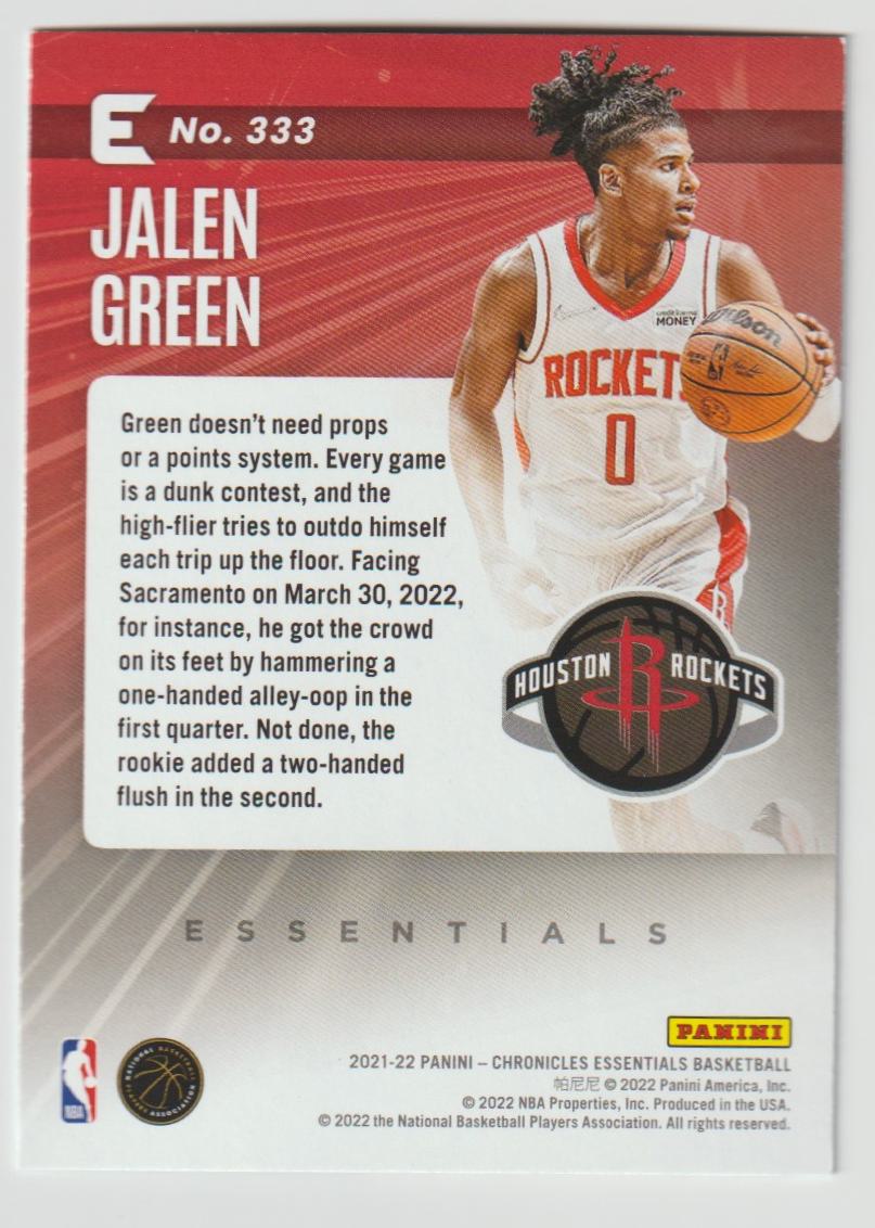 333 Jalen Green - Houston Rockets Green 2021/22 Chronicles Basketball