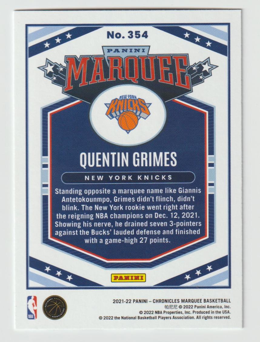 354 Quentin Grimes - New York Knicks 2021/22 Chronicles Basketball