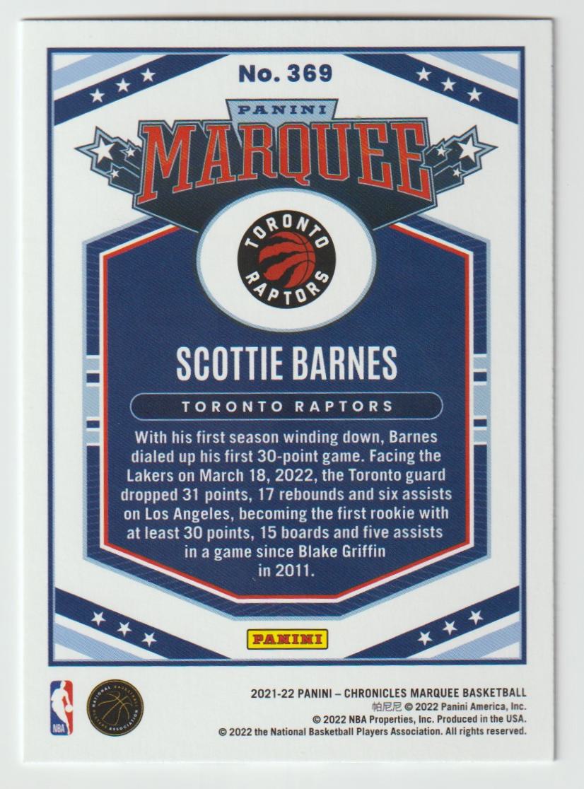 369 Scottie Barnes - Toronto Raptors 2021/22 Chronicles Basketball