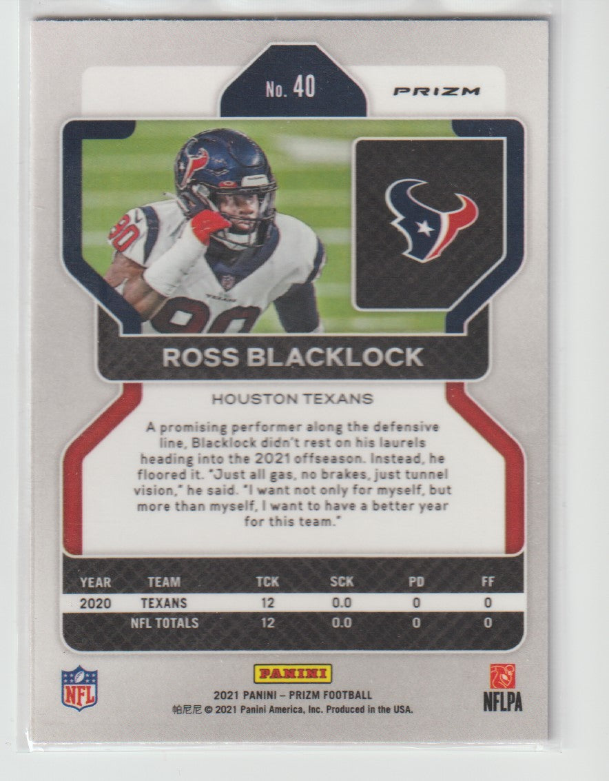40 Ross Blacklock - Houston Texans Red White Blue 2021 Prizm Football